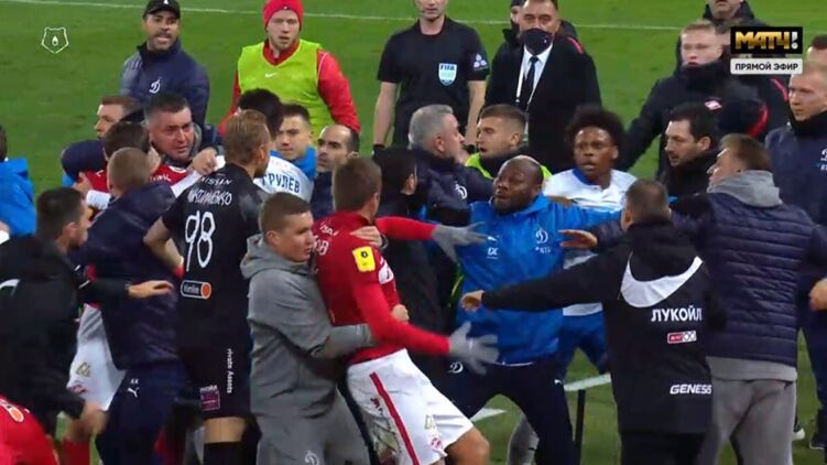 Конфликт начался после нарушения игрока "Динамо" Арсена Захаряна против футболиста "Спартака" Максимилиано Кофрие. В потасовке приняли участие тренеры и запасные игроки команд.