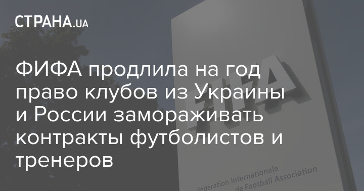 Международная федерация футбола (ФИФА) продлила право украинских клубов замораживать контракты футболистов и тренеров.