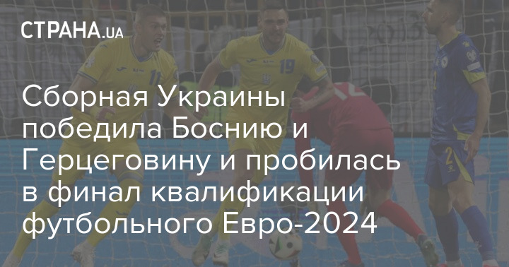 Сборная Украины по футболу выиграла полуфинальный матч плей-офф у Боснии и Герцеговины и вышла в финал квалификации к Евро-2024. Поединок закончился со счетом 2:1.