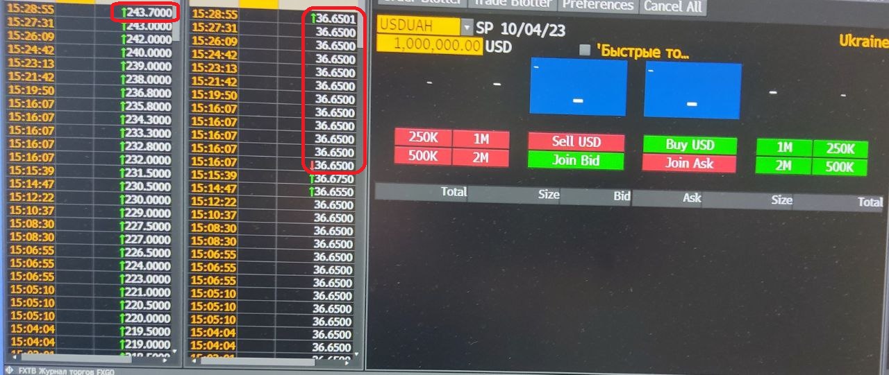 На другий день гнучкого курсу почав знижуватися валютний попит на міжбанку: обсяг торгів на Bloomberg скоротився вдвічі — із вчорашніх $550,2 млн. до $243,7 млн.