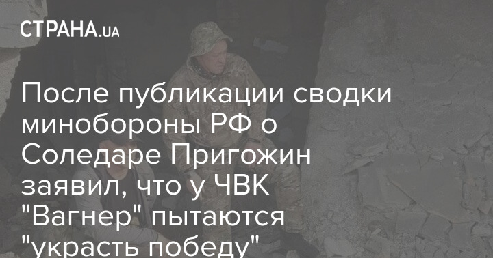 Він, очевидно, має на увазі відсутність згадок ПВК "Вагнер" у зведеннях міноборони РФ про захоплення Соледара, яке, як стверджував Пригожин, штурмували лише "вагнерівці".