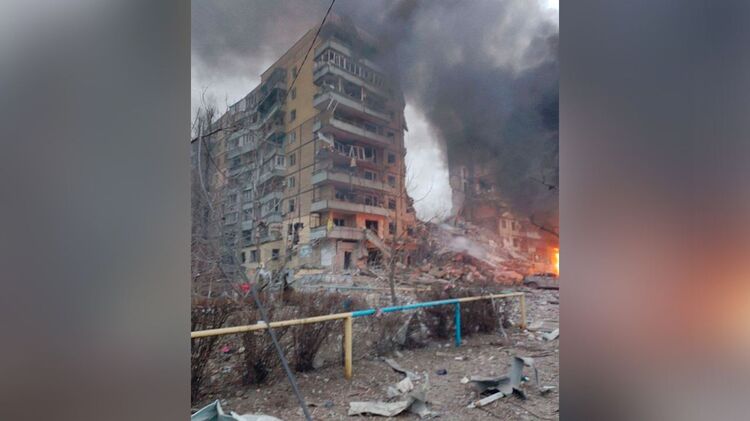 У ходімасованої атаки по Україні одна з ракет прилетіла до багатоповерхового будинку у Дніпрі. Зруйновано щонайменше один під'їзд, під завалами перебувають люди.