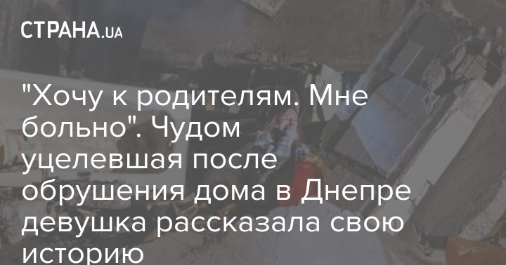 "Хочу до батьків. Мені боляче". Дівчина, яка дивом вціліла після обвалення будинку в Дніпрі, розповіла свою історію.