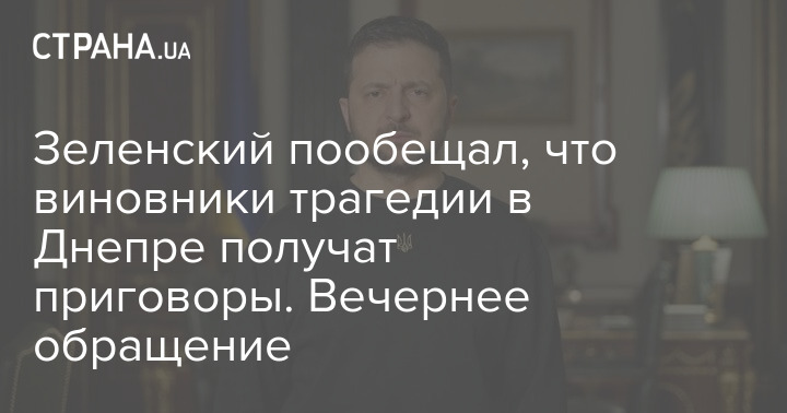 Зеленський пообіцяв, що винуватці трагедії у Дніпрі отримають вироки. Вечірнє звернення