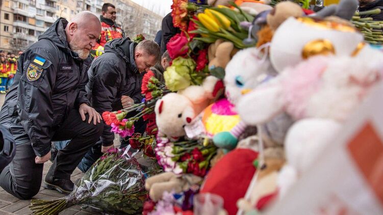 "Квіти на згадку про безневинні життя, які забрали росіяни, принесли до розбитого будинку разом із рятувальниками, поліцейськими, волонтерами Дніпра.