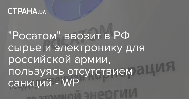 "Росатом" ввозить до РФ сировину та електроніку для російської армії, користуючись відсутністю санкцій - WP