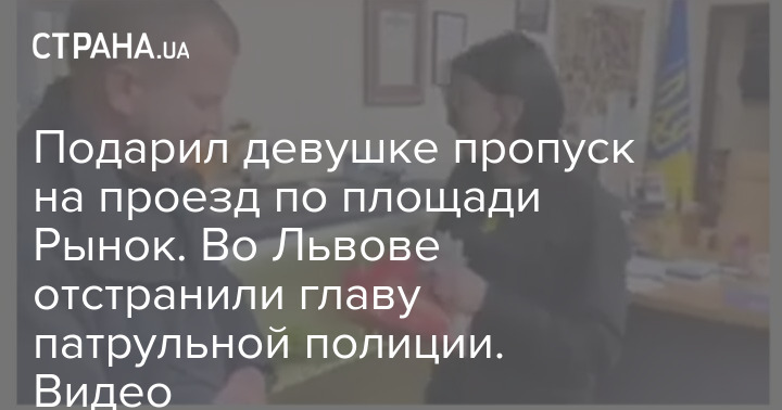 Начальника львівської патрульної поліції Романа Пилипенка відсторонили від роботи за те, що він подарував своїй дівчині перепустку на проїзд площею Ринок у Львові.