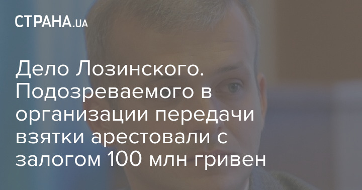 Підозрюваного в організації передачі великого хабара екс-заступнику міністра інфраструктури, розвитку громад та територій Василю Лозинському взяли під варту з можливістю внесення застави у 100 мільйонів гривень.