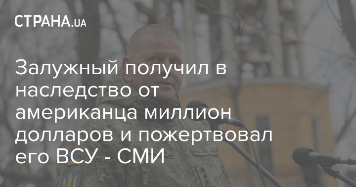 Головнокомандувач Збройних сил України генерал Валерій Залужний отримав у спадок із США один мільйон доларів. Після цього він передав усі отримані гроші на потреби української армії.
