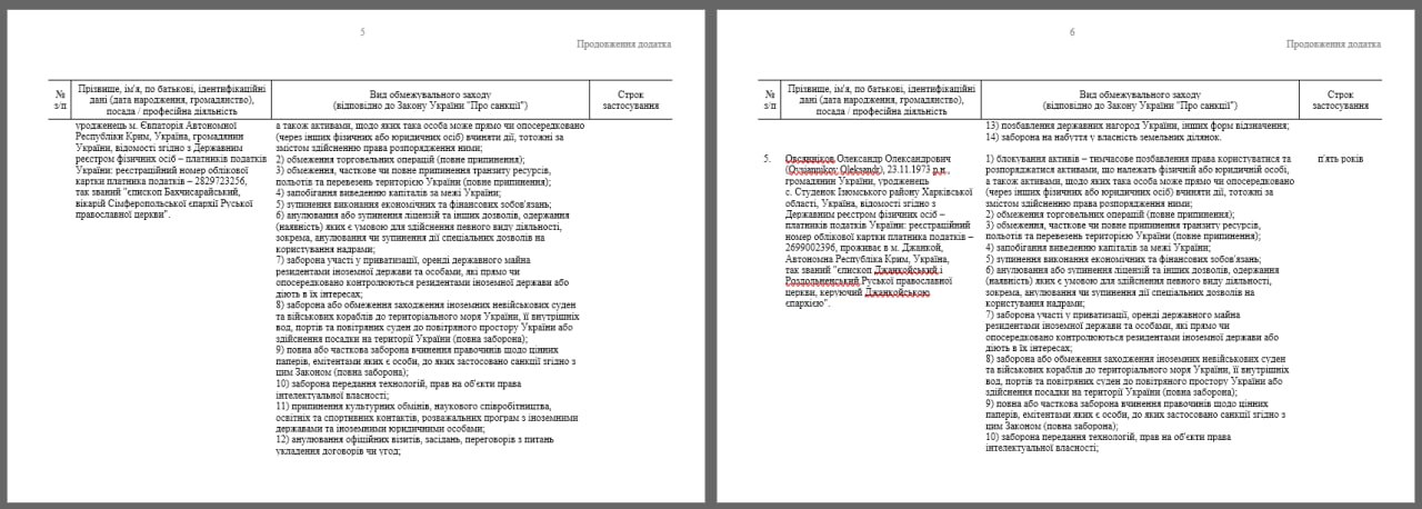 Список осіб, проти яких запроваджено санкції РНБО, згідно з указом президента: