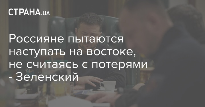 Президент України Володимир Зеленський заявив, що російська армія намагається наступати на сході,  незважаючи на втрати.