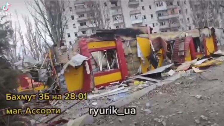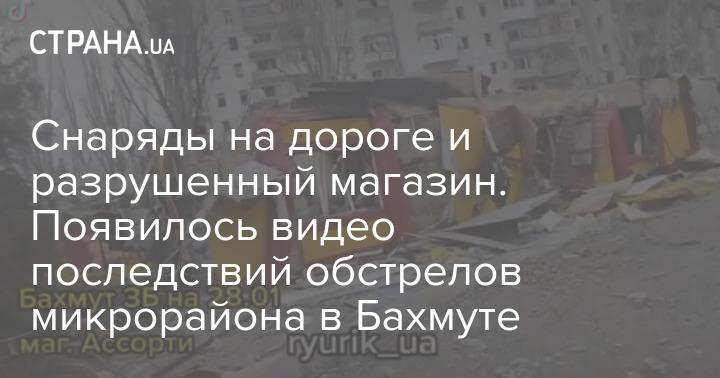 Снаряди на дорозі та зруйнований магазин. З'явилося відео наслідків обстрілів мікрорайону у Бахмуті