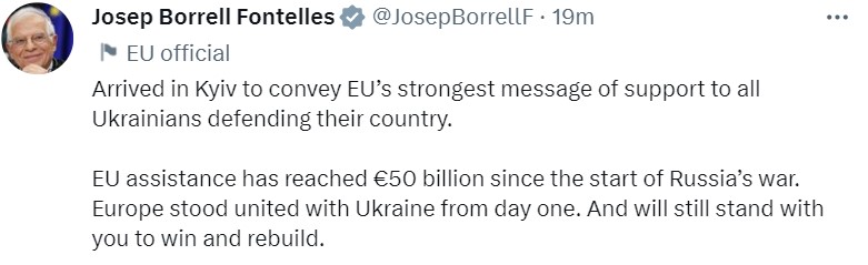 Також у Київ прибув верховний представник ЄС Жозеп Боррель.