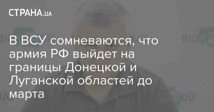 В Східному угрупуванні військ ЗСУ сумніваються, що військам РФ вдасться вийти на кордони Донецької та Луганської областей до березня. Там заявляють, що до планів РФ входить таке захоплення, згідно з наказом президента РФ Володимира Путіна.
