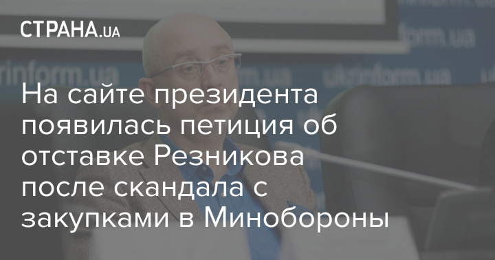 На тлі скандалу із державними закупівлями в Міністерстві оборони на сайті президента з'явилася петиція за відставку міністра оборони Олексія Резнікова.
