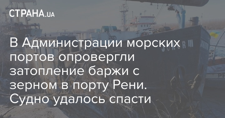 В Адміністрації морських портів спростували затоплення баржі із зерном у порту Рені. Судно вдалося врятувати