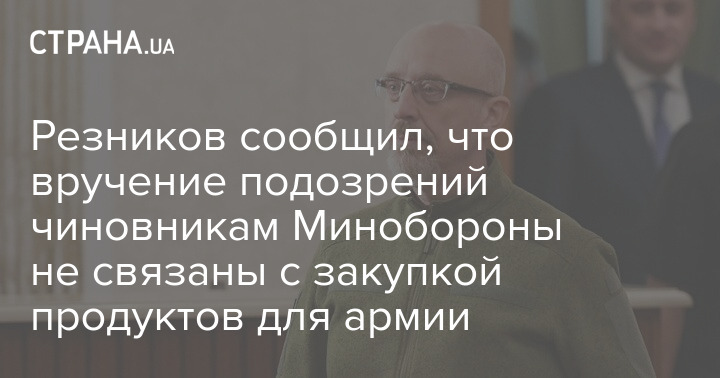 Підозри, які вручили чиновникам Міноборони українські силовики, не пов'язані із закупівлею харчування, заявив міністр оборони Олексій Резніков на сьогоднішній прес-конференції.