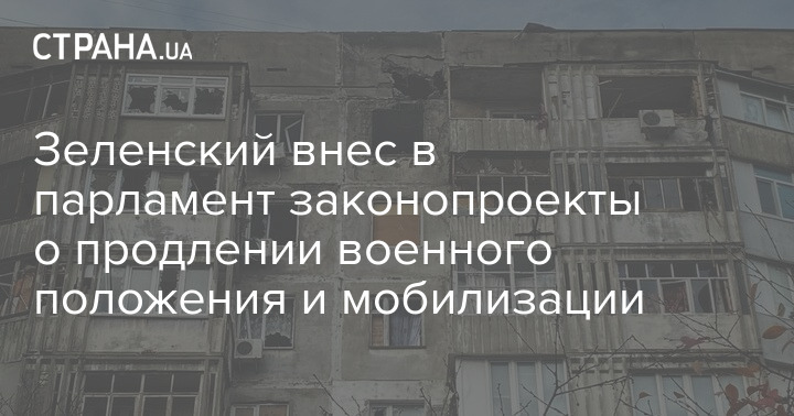 Президент України Володимир Зеленський вніс до Верховної Ради законопроекти про продовження військового стану та загальну мобілізацію в країні.