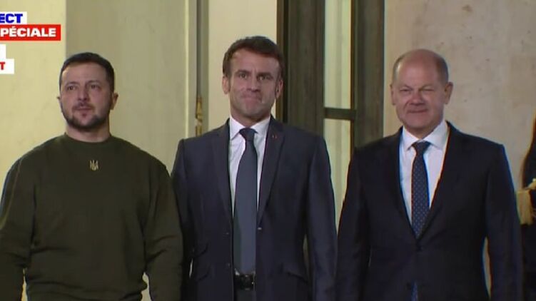 Президент Володимир Зеленський зустрівся з президентом Франції Еммануелем Макроном та канцлером Німеччини Олафом Шольцем у Єлисейському палаці.