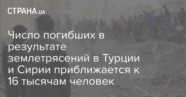 Число загиблих внаслідок землетрусів у Туреччині та Сирії наближається до 16 тисяч осіб