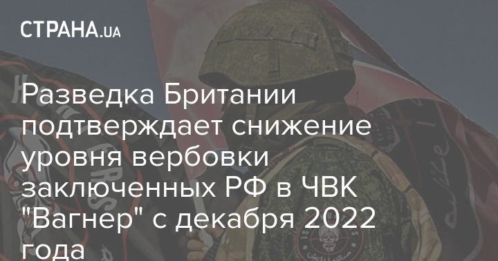 Дані Федеральної служби виконання покарань Росії дійсно свідчать про зниження рівня вербування ув'язнених у ПВК "Вагнер" з грудня 2022 року, пише британська військова розвідка у своєму свіжому зведенні у Twitter.
