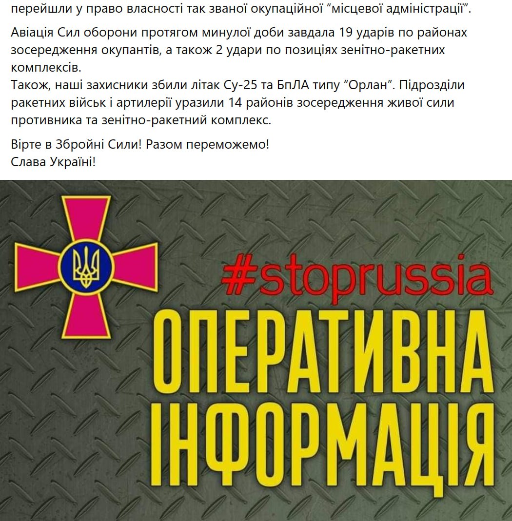 18:13 Вечірнє зведення Генштабу ЗСУ.