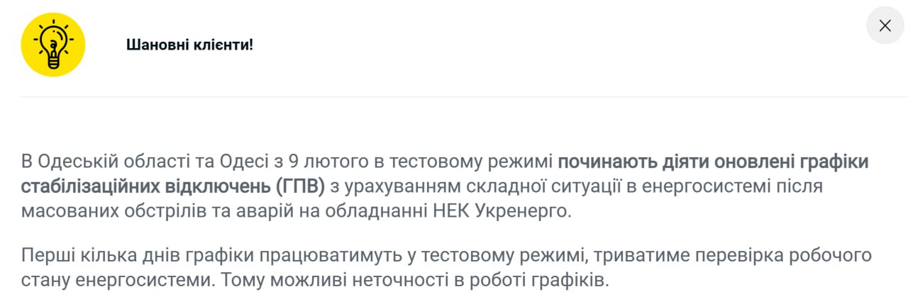 Те саме обіцяли щодо Одеси, але поки що на сайті ДТЕК для міста вказані стабілізаційні відключення.
