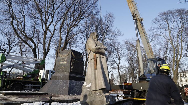 Демонтаж пам'ятника Ватутіну з Маріїнського парку у Києві. Фото: kyivcity.gov.ua