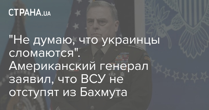 Голова Об'єднаного комітету начальників штабів НАТО генерал Марк Міллі прогнозує, що українські сили не відступатимуть із Бахмута.