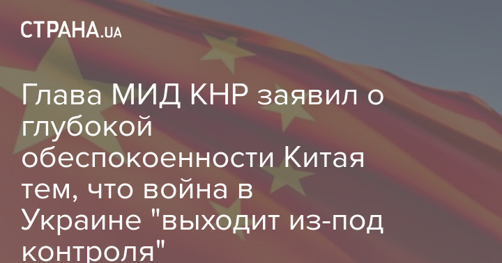 Голова МЗС КНР заявив про глибоке занепокоєння Китаю тим, що війна в Україні "виходить з-під контролю"