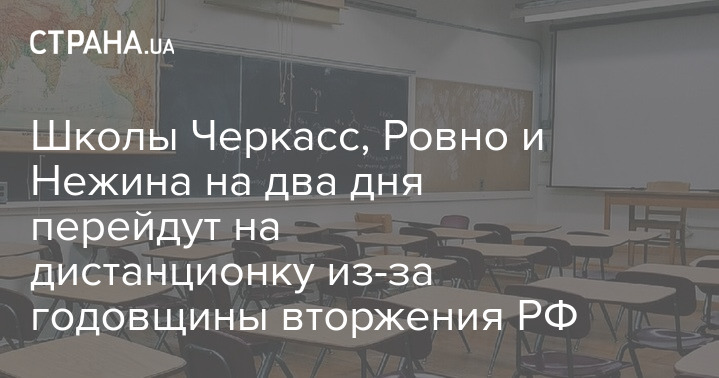 Слідом за Броварами, де на річницю вторгнення РФ усі школи переводяться на дистанційне навчання, у Черкасах, Рівному та Ніжині Чернігівської області школи також переводять на дистанційну освіту. Такі заходи запроваджують через можливі удари з боку РФ 24 лютого.