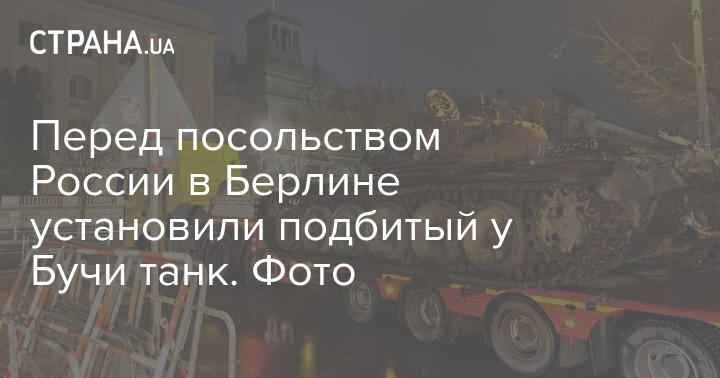 Перед посольством Росії у Берліні встановили підбитий у Бучі танк. Фото
