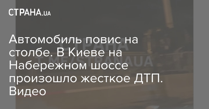 На кадрах можна побачити, що внаслідок аварії автомобіль повис на стовпі.