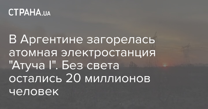 В Аргентині НП на атомній електростанції "Атуча I". Без світла залишилося 20 мільйонів людей - це близько 40% споживачів у Буенос-Айресі та кількох провінціях.