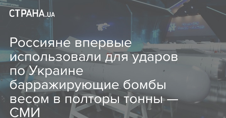 Російські війська вперше почали застосовувати в Україні бомби, що барражують, УПАБ-1500. Вага кожного боєприпасу складає 1,5 тонни. Вони використовуються для ураження високозахищених об'єктів на відстані до 40 км.