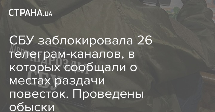 Служба безпеки України заблокувала 26 телеграм-каналів, у яких повідомляли актуальні місця роздачі повісток. У шести адміністраторів пабліків вже провели обшуки, їм готуються вручити підозри.