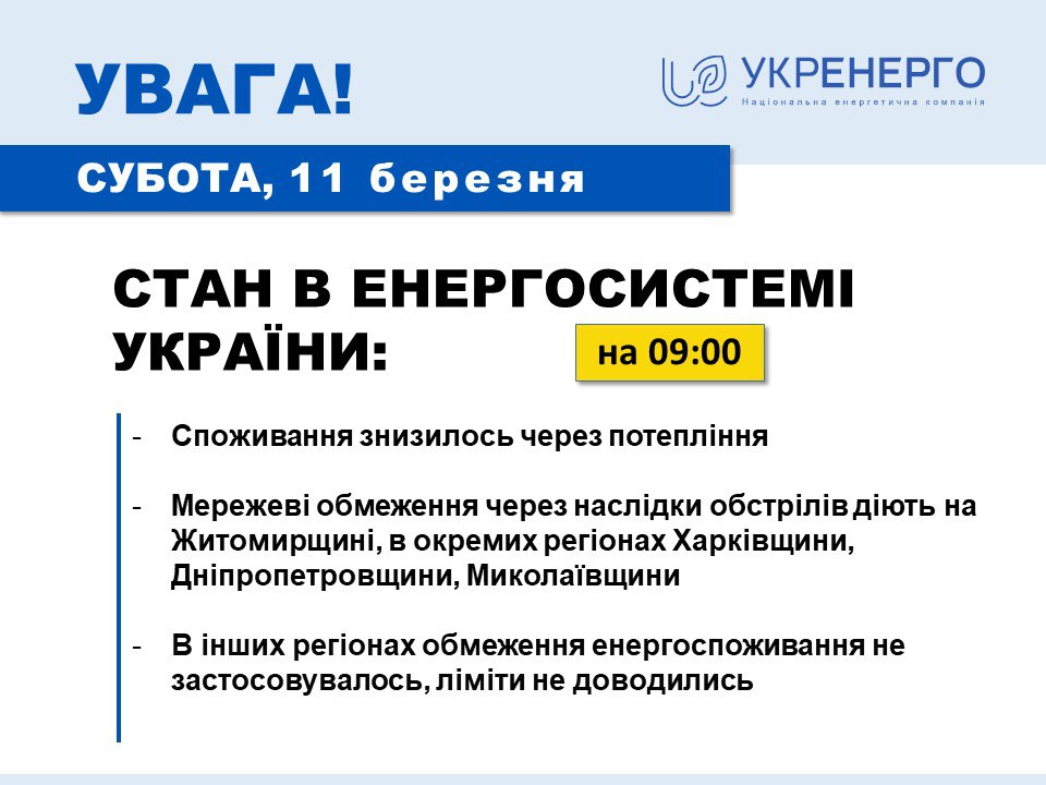 В інших регіонах обмеження енергоспоживання не застосовувалося, ліміти не були.