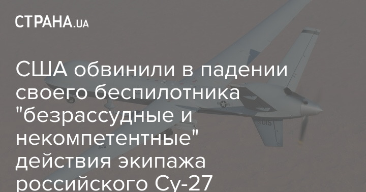 Європейське командування ВПС США заявило, що американський дрон MQ-9 Reaper зазнав аварії через "безрозсудні та некомпетентні" дії екіпажу російського літака Су-27 у міжнародних водах. Це сталося о 07:03 (о 08:03 за Києвом) 14 березня за європейським часом.