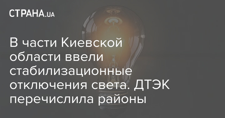 У частині Київської області запровадили стабілізаційні відключення світла. ДТЕК перелічила райони