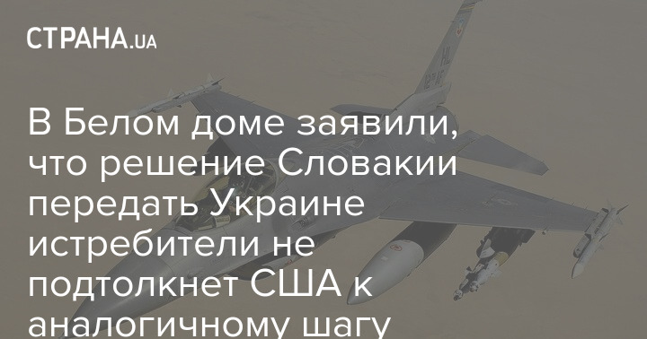"Це було суверенним рішенням Словаччини, яке, однак, не впливає на наше власне бачення з цього питання", - сказав Кірбі на брифінгу, відповідаючи на запитання, чи вплинуло рішення їхнього європейського партнера поставити Києву винищувачі на те, як у Вашингтоні розглядають подібну перспективу.