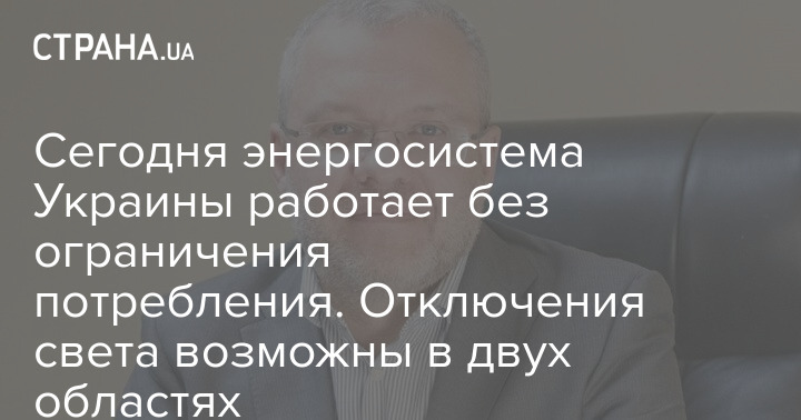 Сьогодні енергосистема України працює без обмеження споживання. Відключення світла можливі у двох областях