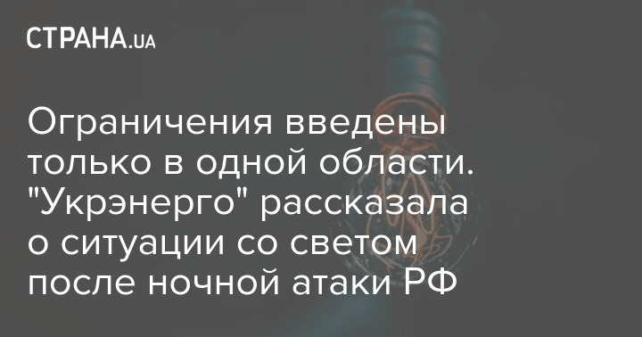 Обмеження введено лише в одній області. "Укренерго" розповіла про ситуацію зі світлом після нічної атаки РФ