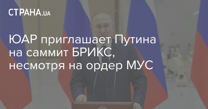 ПАР запрошує Путіна на саміт БРІКС, незважаючи на ордер МКС