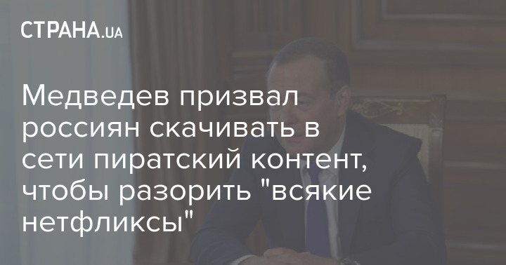"Якщо вони пішли від нас, всякі "нетфлікси" та інші, значить, будемо це все завантажувати, будемо користуватися безкоштовно. А я б все це по Мережі розкидав, для того щоб завдати їм максимальної шкоди. Максимальна шкода, щоб вони збанкрутували!" - Заявив Медведєв.