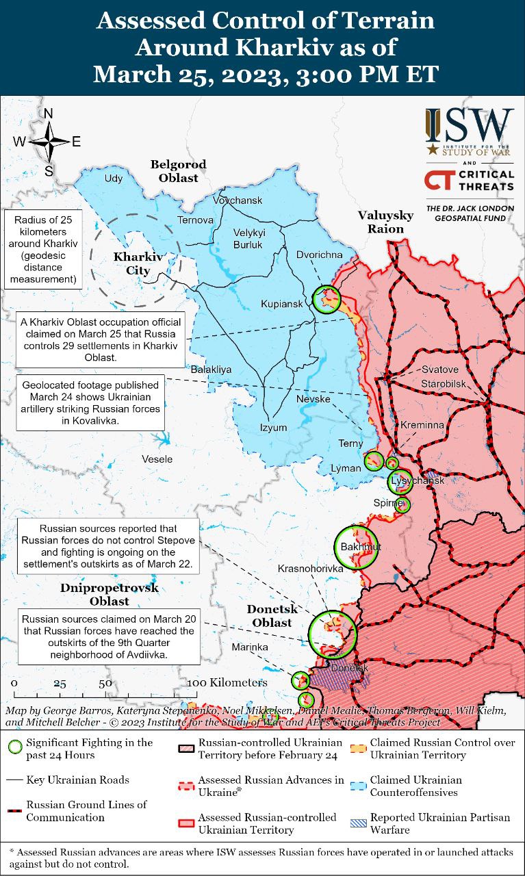 При цьому "Інститут" вважає, що російські зусилля в Бахмуті "сягнули кульмінації", і поки оточити місто їм не вдається.