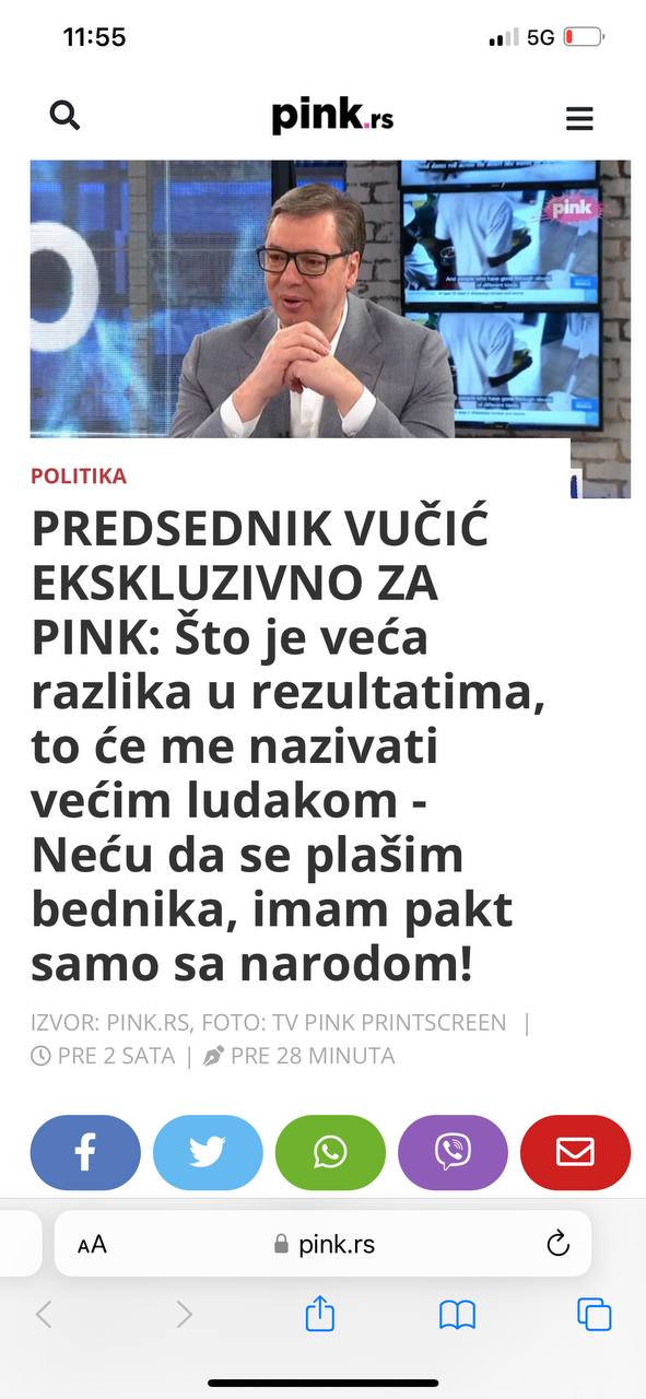 13:00 Президент Сербії Олександр Вучич очікує на прискорений вступ України до ЄС у зв'язку з нинішньою війною. Про це він заявив в ефірі Pink TV.