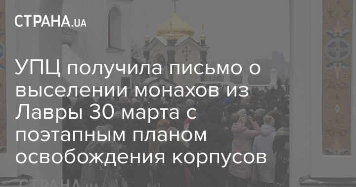 Українська православна церква отримала лист від Національного заповідника "Києво-Печерська Лавра", зі змісту якого слідує, що виселяти ченців УПЦ влада планує завтра, 30 березня.
