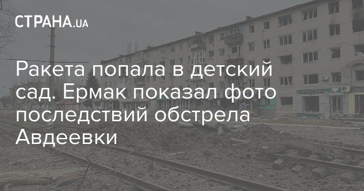 Ракета потрапила до дитячого садка. Єрмак показав фото наслідків обстрілу Авдіївки