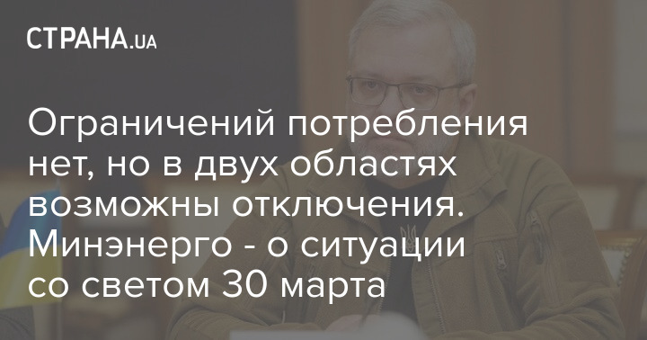 Міністр енергетики України Герман Галущенко заявив, що у четвер, 30 березня, енергосистема країни працює без обмежень споживачів із резервом потужності. Однак у деяких населених пунктах Одеської та Чернігівської областей ще можливі нетривалі відключення.