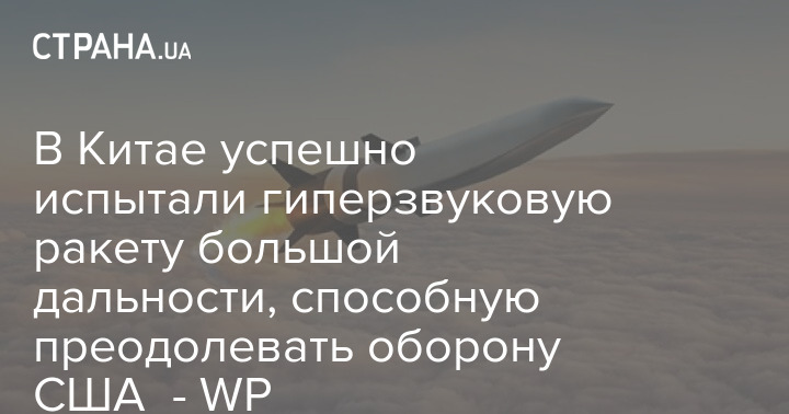 У Китаї успішно випробували здатну долати оборону США гіперзвукову ракету великої дальності - WP
